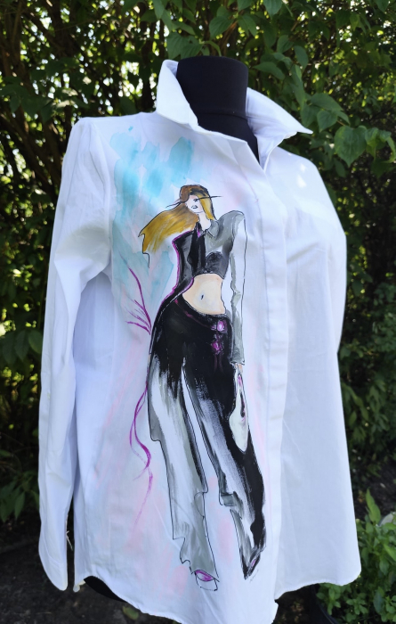 Cămașă pictata manual cu produse de cea mai bună calitate, special create pentru pictură pe textile, rezistente la apă și transfer.