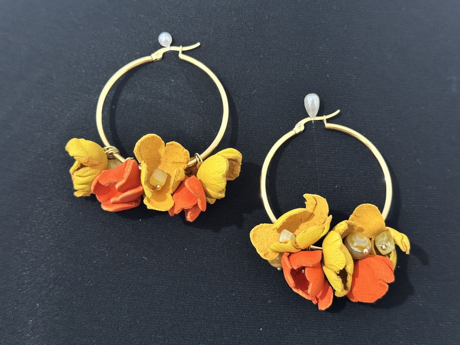 Cercei în nuanțe de galben/ portocaliu cu pietre semiprețioase