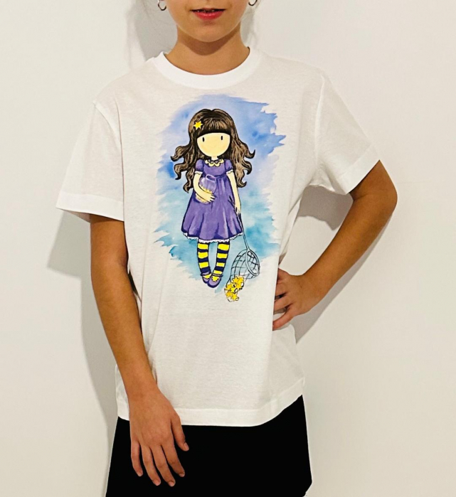 Tricou pictat manual cu produse de cea mai bună calitate, special create pentru pictură pe textile, rezistente la apă și transfer.
