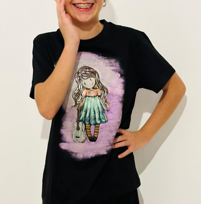 Tricou pictat manual cu produse de cea mai bună calitate, special create pentru pictură pe textile, rezistente la apă și transfer.