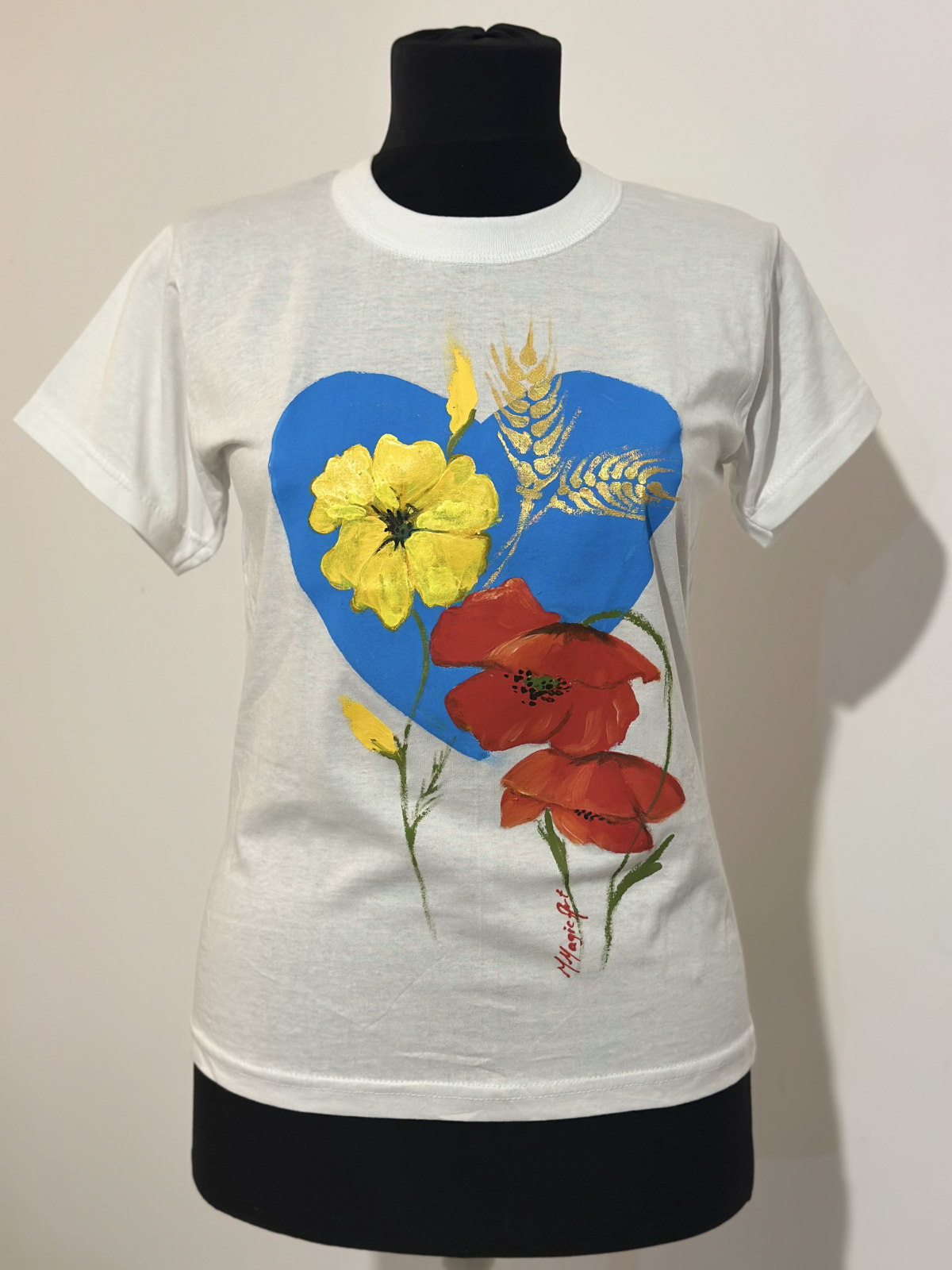 Tricou pictat manual cu produse de cea mai bună calitate, special create pentru pictură pe textile, rezistente la apă și transfer.